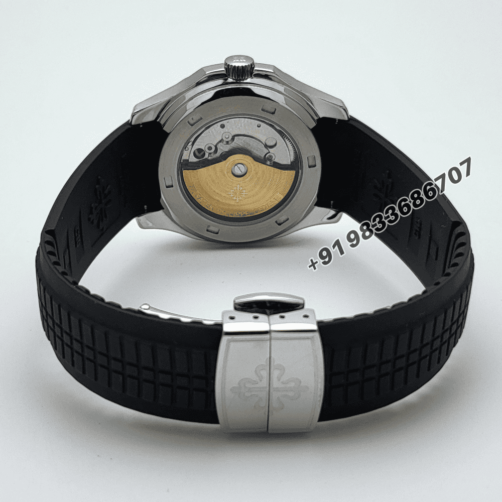 Quality: High Quality Watch Warranty Period: 1 Year Movement: Patek Philippe Swiss Automatic Movement Dimension: 40.8mm Dial Color: Black Dial Bezel: Steel Bezel Glass: Scratch Resistance, Sapphire Crystal Case: Stainless Steel Case Back Case: Transparent Back Case Strap: Black Rubber Strap Water Resistance: 100m Box: Comes with Free Normal Watch Box